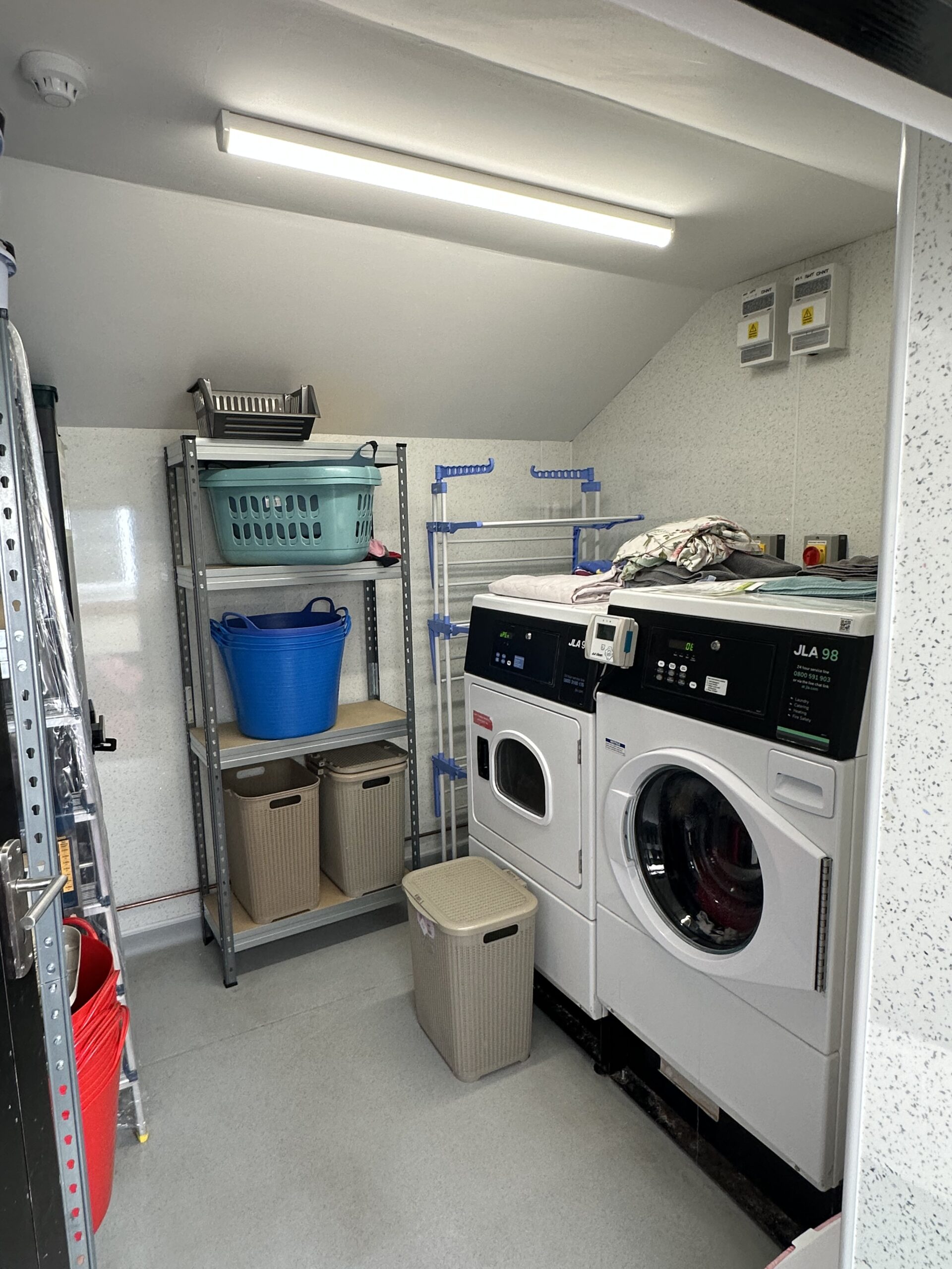 We have modern washing and drying facilities that are housed in a designated laundry room.